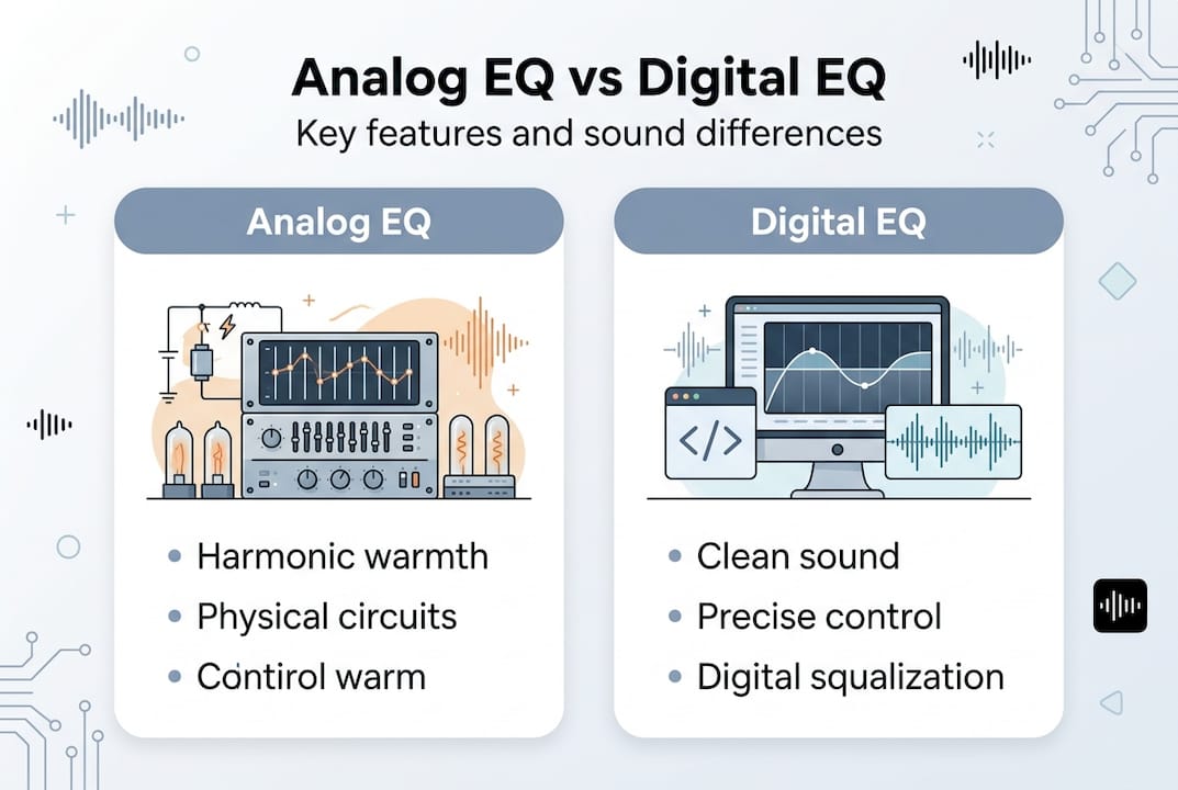 If warmth and classic coloration are central to your sound, analog EQ can be a worthwhile investment. For most indie producers, a hybrid analog-digital approach that uses analog for character and digital for surgical control offers the best balance of quality and cost.